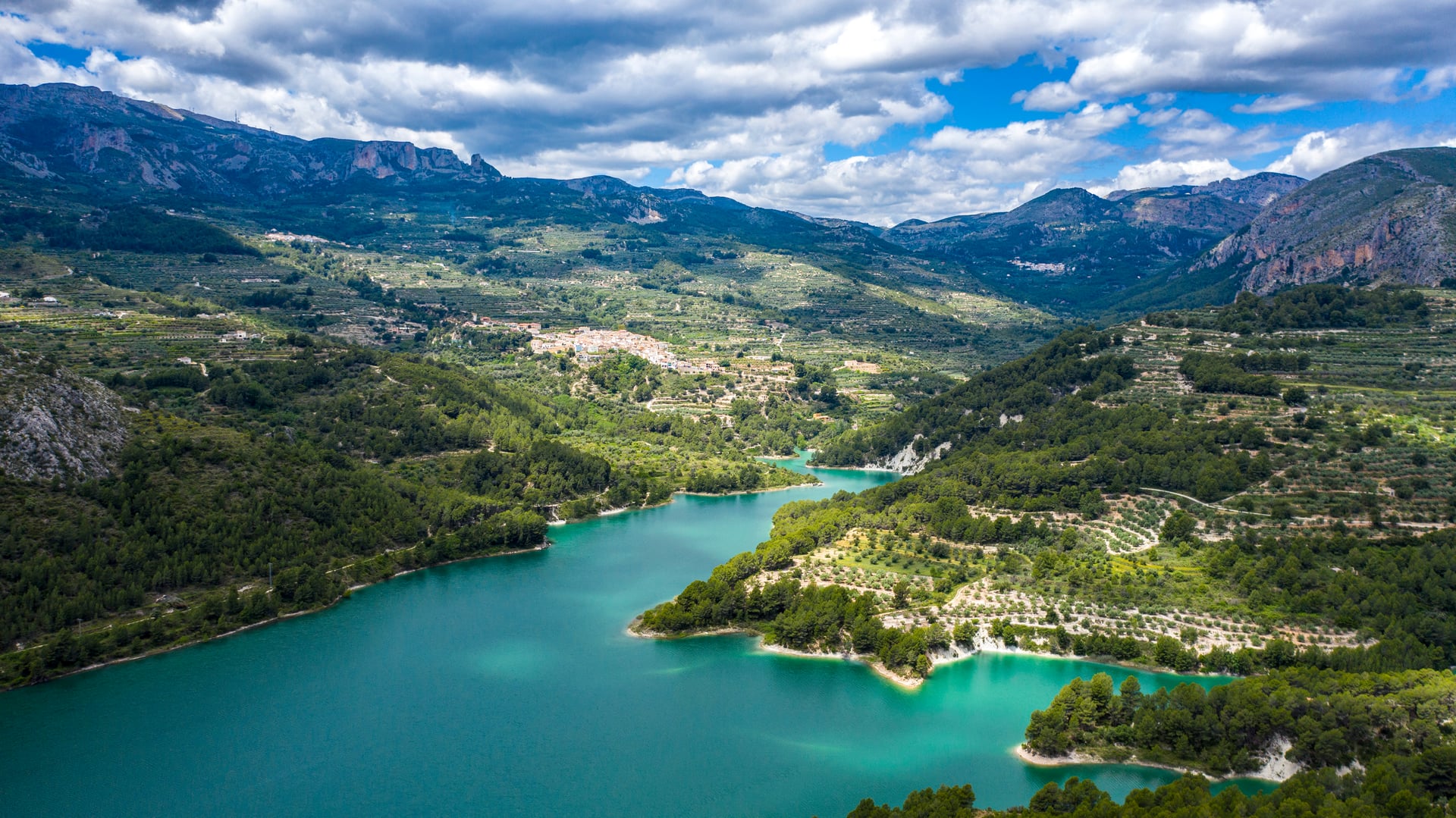 De smaragdgröna vattnen i Guadalest-reservoaren – en bildskön tillflyktsort för friluftsentusiaster.